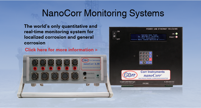 Coupled Multielectrode Sensor Analyzer for Real-Time Monitoring of Localized Corrosions- Building upon patented coupled multielectrode sensor technology, our nanoCorr® Analyzers and CorrVisualTM software make the real-time monitoring of localized and most types of general corrosions easy and accurate in liquids, soils, bio-deposits and gases….
